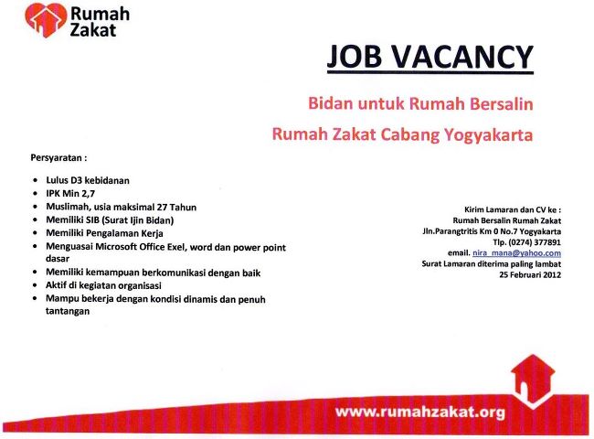 Lowongan Kerja Bidan di Rumah Bersalin Rumah Zakat Cabang Yogyakarta